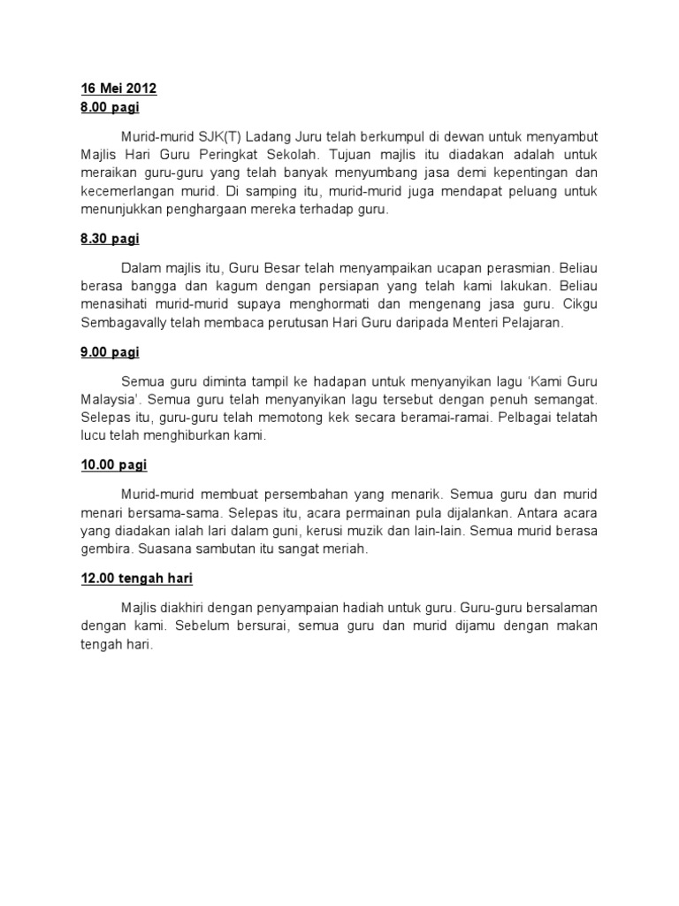 Laporan dokumentasi sambutan hari guru tahun 2016 sekolah kebangsaan tengku mahkota. Teks pidato sambutan ketua panitia peringatan isra' mi'raj nabi muhammad saw dilingkungan contoh pidat sambutan isra mi`raj desa/rw ini hanyalah sekedar contoh ajah bagi anda yang kebetulan sedang mencarinya. Pada hari isnin, 17 mei 2016, sekolah menengah kebangsaan tengku mahkota telah mengadakan majlis sambutan hari guru bersempena dengan hari guru yang jatuh pada 16. Jangan pernah lupa betapa pentingnya pekerjaanmu. Peringatan hari guru nasional telah dituntaskan di bulan november.