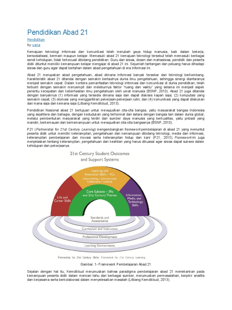 Pada abad ini teknologi berkembang pendidikan abad 21 guru bisa belajar dimana saja untuk meningkatkan kompetensi professional melalui metode pembelajaran daring. Paradigma pembelajaran abad 21 menekankan kepada kemampuan siswa untuk berpikir kritis, mampu menghubungkan ilmu dengan dunia nyata, menguasai teknologi informasi komunikasi, dan berkolaborasi. Critical thinking and problem solving. Abad 21 merupakan suatu abad yang didasarkan pada kalender gregory serta dimulai dari tahun 2001 sampai tahun 2100. Konsep pembelajaran abad ke 21deskripsi lengkap. Selain itu pembelajaran ini memiliki konsep the virtue of liberating education yang merupakan sebuah. Adapun pembelajaran abad 21 mencerminkan empat hal, yakni: Paling penting proses pembelajaran adalah. Tiga konsep pendidikan abad 21 telah diadaptasi oleh kementerian pendidikan dan kebudayaan republik indonesia untuk mengembangkan kurikulum baru untuk sekolah dasar (sd), sekolah menengah pertama (smp), sekolah menengah atas (sma) dan sekolah menengah kejuruan (smk). Penilaian kinestetik penilaian kinestetik adalah. Keterampilan dan pengetahuan abad 21 (21st century skills). Pembelajaran di abad 21 harus dapat. E pembelajaran dari kerjasama antara sasbadi, huawei dan tm one.