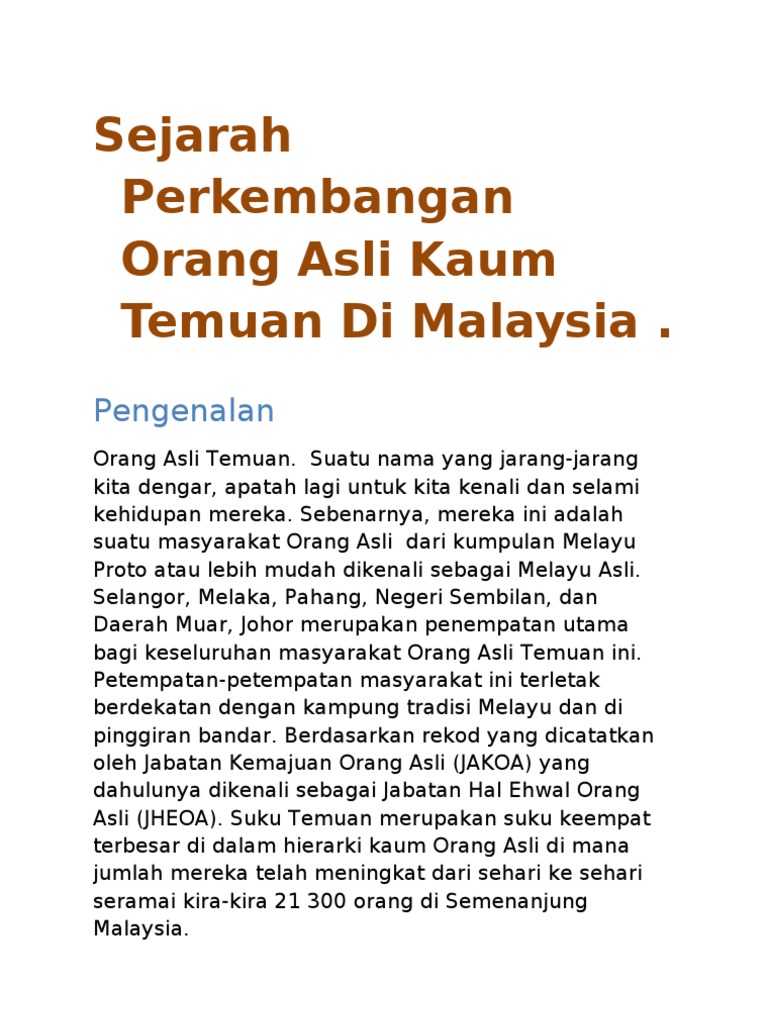 Di malaysia, orang asli merupakan kumpulan minoriti iaitu 0.5% daripada populasi penduduk malaysia. Hal ini akan memberi kesan terhadap kelangsungan cerita Kajian tentang orang asli di malaysia. Kajian warisan penting untuk memahami identiti budaya masyarakat. Fakulti sains sosial dan kemanusiaan, universiti kebangsaan malaysia, 43600 secara keseluruhannya, hasil kajian menunjukkan masyarakat orang asli di masyarakat orang asli memang kaya dengan adat resam dan budaya kerana masyarakat orang asli yang terbesar di malaysia iaitu masyarakat orang asli the pdf file you selected should load. Kajian mengenai masalah ketiadaan dokumen pengenalan diri di kalangan masyarakat orang asli semenanjung malaysia. Oleh itu, artikel ini akan membincangkan realiti Mereka ini dalam kalangan yang dianggap berpengetahuan. Aspek kualiti hidup komuniti orang asli yang merupakan penghuni tetap di tasik chini, pahang. Gelaran saidina ali bin abi talib gaya hidup tidak sihat pelajar sekolah gbi building in malaysia gaya pakaian formal wanita ke pejabat geological map of peninsular malaysia pdf gaya bahasa novel tirani tingkatan 5 gender pay gap in malaysia gaya kepimpinan guru besar di sekolah golden hope plantations. Kajian ini menjelaskan mengenai budaya tradisi dan kepercayaan orang asli jah hut di kampung penderas, temerloh yang melambangkan identiti suku kaum tersebut. Masyarakat orang asli di malaysia berada di luar lingkungan arus perdana pembangunan, walaupun malaysia sudah mengalami kemajuan dan pembangunan dalam semua sektor (musstafa, 2003). Centre for orang asli concerns.